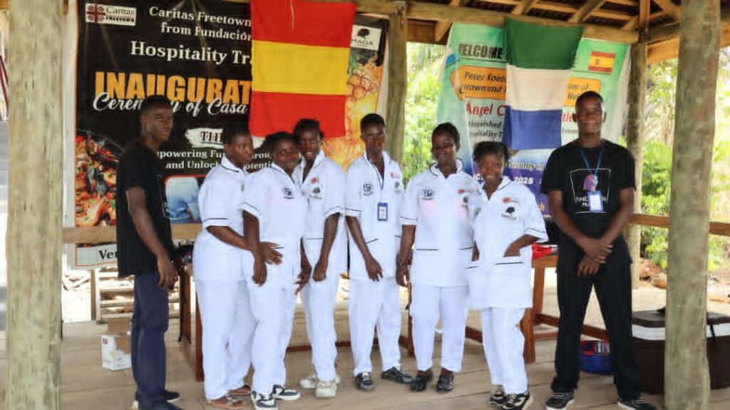 The Casa Leone Hospitality Project, supported by FUNDAĆION MAGA, has conducted a practical examination for its beneficiaries as part of efforts to evaluate and strengthen vocational skills in the hospitality sector. The assessment took place on 13th April 2026 at Bureh Town, Western Area Rural District. The examination brought together four judges who assessed participants on their practical competencies in culinary arts and mixology. The exercise formed a critical component of the project’s training framework, designed to equip beneficiaries with hands-on experience and industry-relevant skills. During the culinary segment, participants demonstrated a range of techniques in seafood preparation. Dishes presented included baked lobster served with fried rice, prawn kebab accompanied by chips and onion sauce, and pan-fried shrimps with egg white rice. The variety and presentation of the meals reflected a growing level of technical proficiency among the trainees. In the mixology segment, participants prepared a selection of both classic and creative beverages. These included well-known cocktails such as Rum and Coke and Gin and Tonic, alongside locally inspired creations like “Mama Salone” and “Ladies Love Cocktail” (LLC). The originality and presentation of these drinks contributed significantly to the overall assessment. The panel of judges, led by Project Lead Madam Isatu Sidibay, commended the participants for their creativity, attention to detail, and practical execution. Particular recognition was given to the “Mama Salone” and “Ladies Love Cocktail,” which emerged as standout presentations during the evaluation. The practical examination underscores the Casa Leone Hospitality Project’s broader objective of empowering individuals through skills development. By providing structured training and assessment, the initiative continues to enhance employment prospects and promote self-reliance among beneficiaries in the community. In conclusion, the successful conduct of the examination reflects both the effectiveness of the training programme and the potential of the participants to transition into the hospitality industry with competence and confidence.