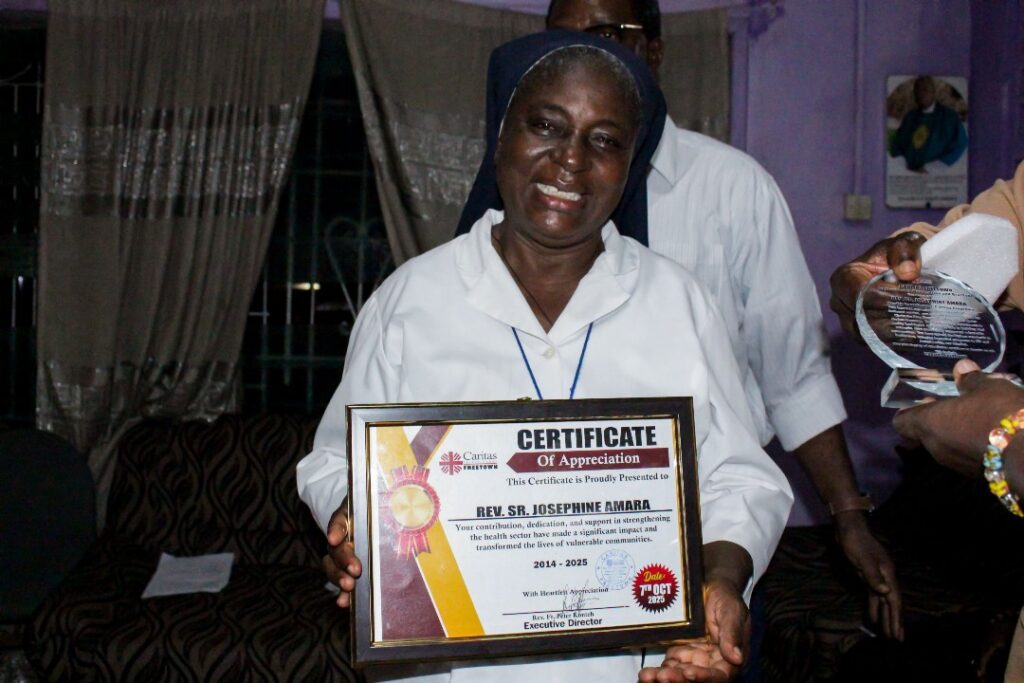 In his remarks, Fr. Konteh praised Sr. Josephine as “a woman of faith whose grace and commitment have left an enduring impact on Caritas Freetown’s mission and the lives of those we serve.”